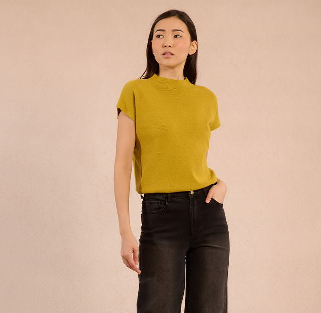 Ribbed Knit Cap Sleeve Top - Chartreuse
