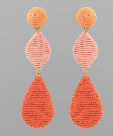 E477 - Multi-Teardrop Wrapped Dangle - Coral