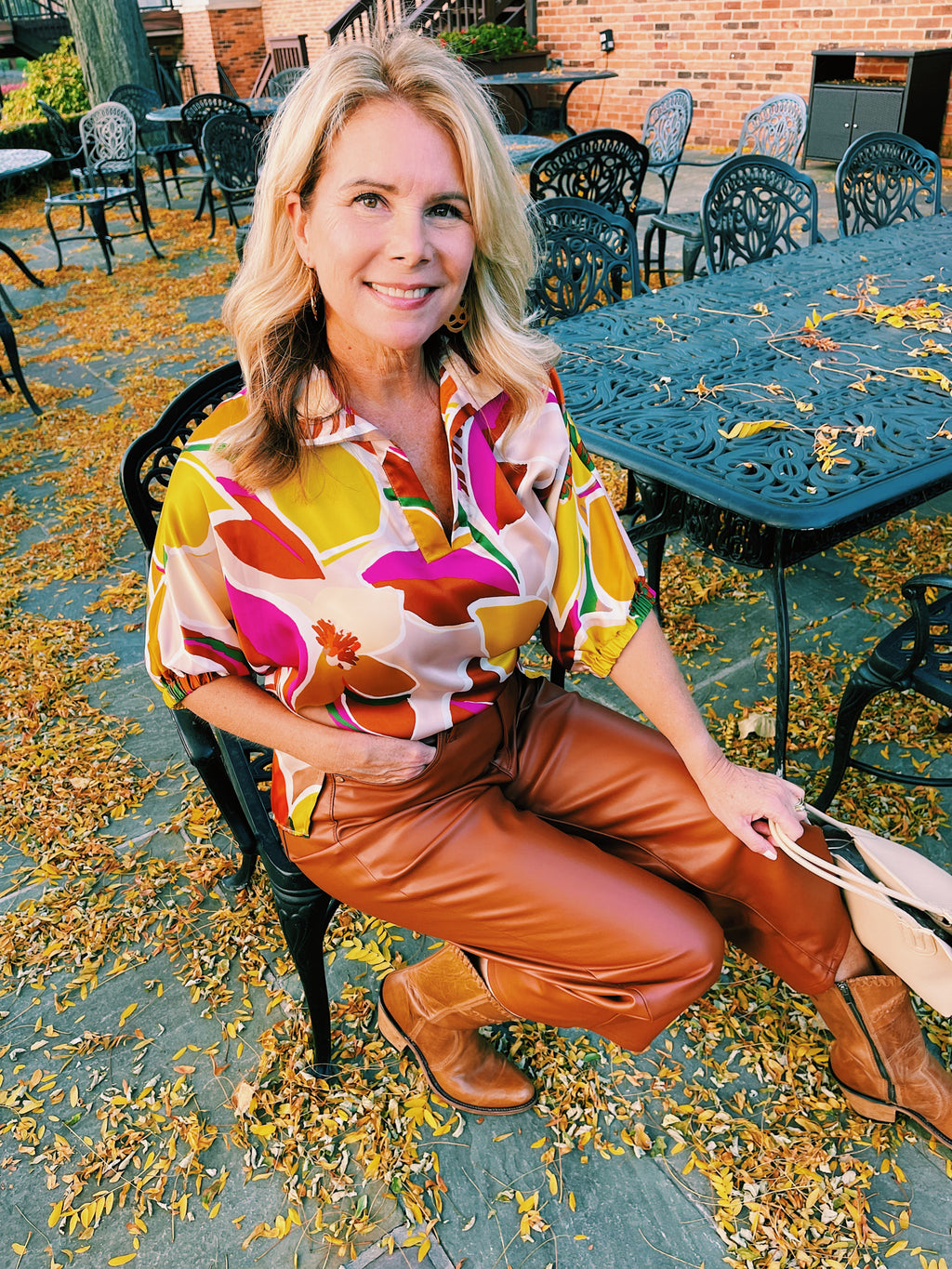 Fall Frenzy Stand Collar Top - Gold