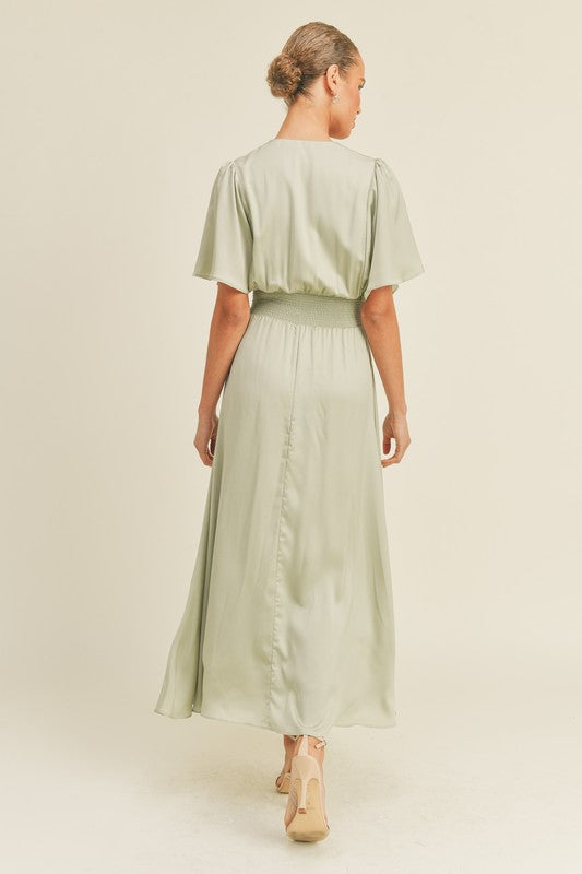 Butterfly Sleeve Smocked Waist Dress - Sage