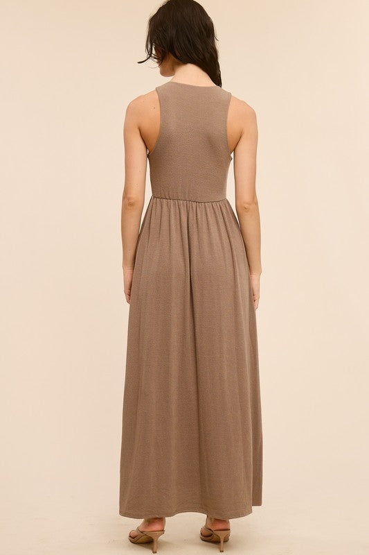 Crewneck Sleeveless Maxi Dress - Mushroom