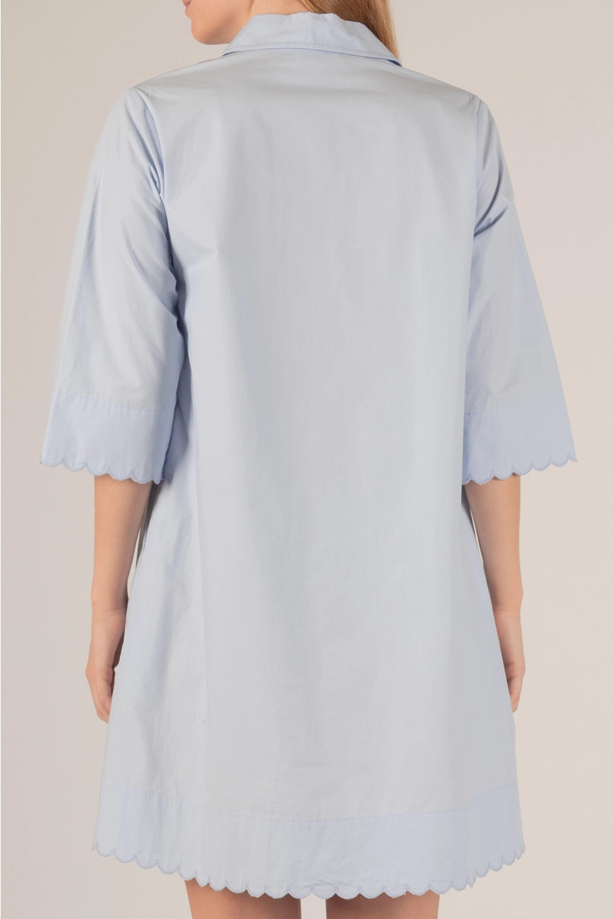 Poplin Scalloped Hem Shirt Dress - Lt. Blue