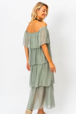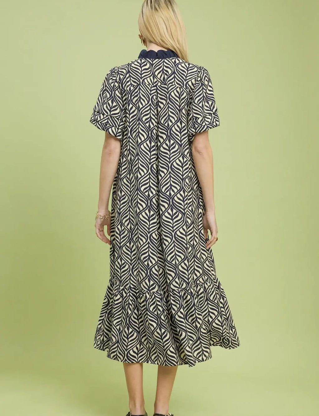 Scalloped Ruffle V-Neck Maxi Dress - Navy