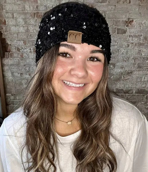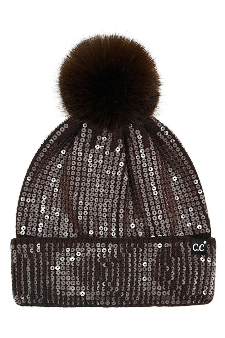 Pom Clear Sequins Knit Hat - Lt. Taupe