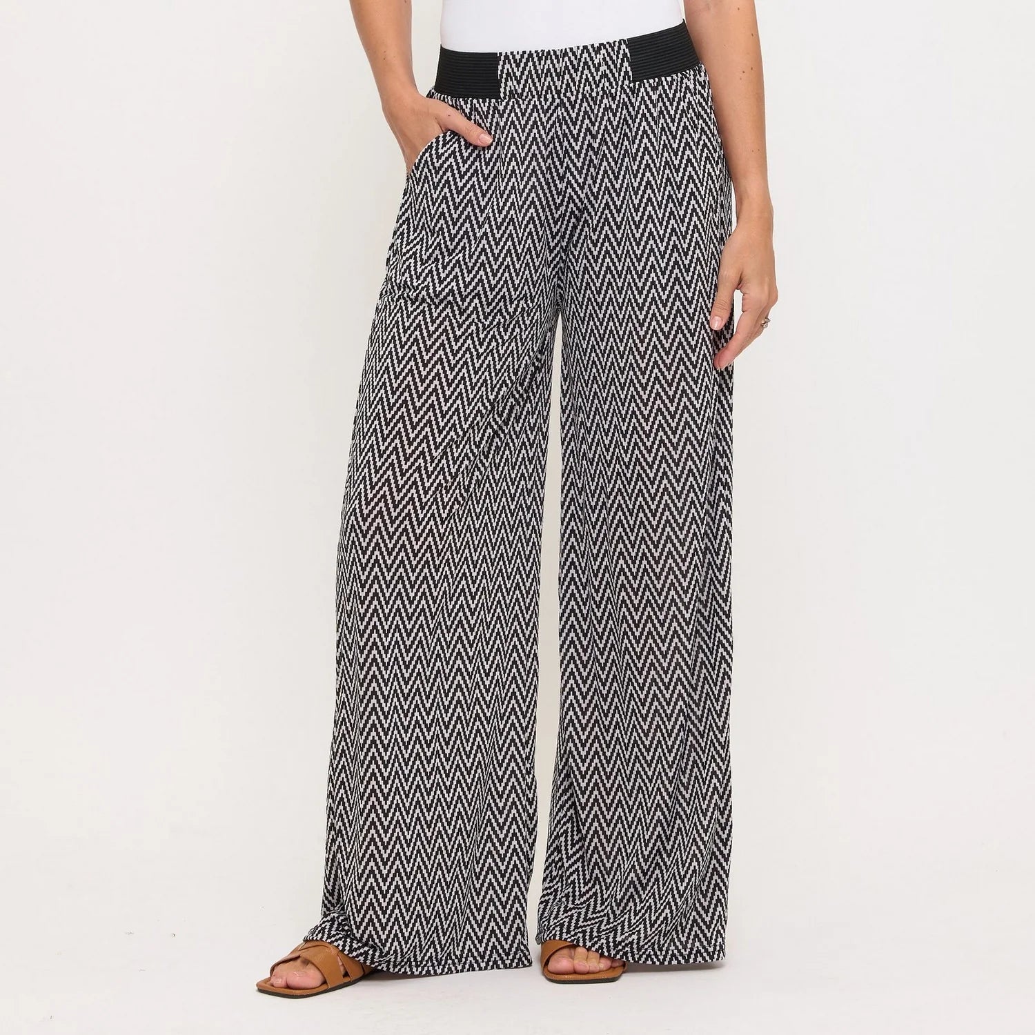 These palm print pants feature a 2" elastic waistband and convenient side pockets for everyday practicality. The wide leg and straight hemline work with any style, and since no hemming is required, simply cut them to your ideal length. Durable construction means no rolling or fraying.