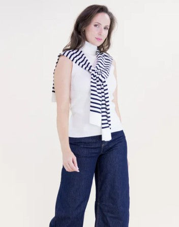 This Shoulder Tie Sweater is the perfect additive to any outfit for an extra layer of comfortability and style. Add a pop of color and pattern around your shoulders without the weight of a heavy sweater. Designed small stripes on the sleeves for added fun.