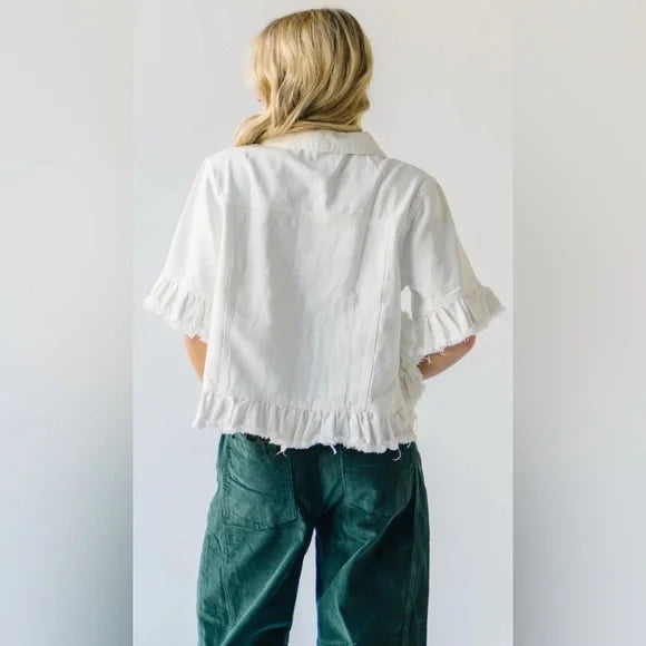 Ruffle Detail Denim Jacket - White