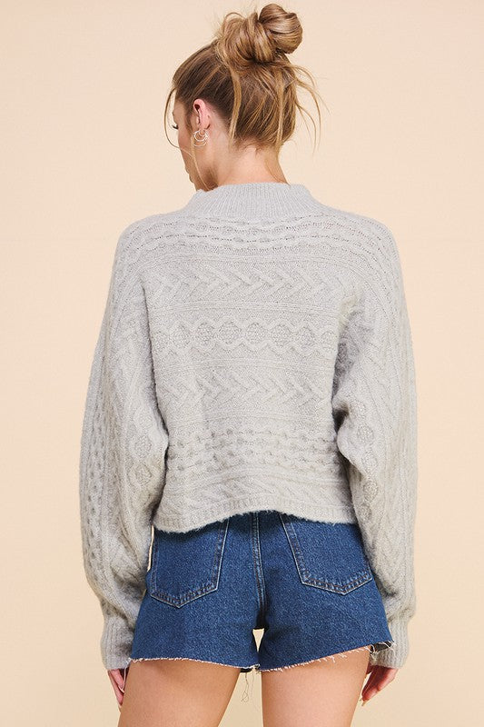 Cable Knit Cropped Sweater - Soft Sage