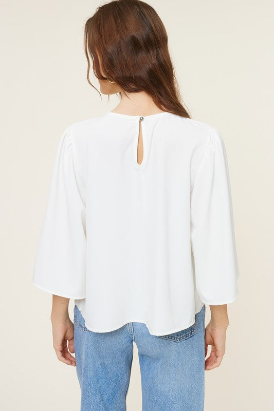 3/4 Sleeve V-Neck Detail Top - Steel Grey
