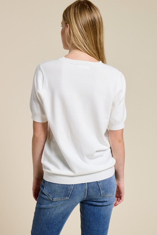 Cashmere Blend Short Sleeve Top - White